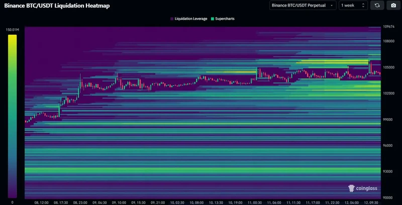 Daan Crypto Trades har påpekt at denne nylige feien var en kortsiktig bevegelse for å fjerne risiko over prisen. Det neste kritiske nivået som handelsmenn bør fokusere på er området rundt 102 000 dollar, som viser stor likvidasjonsaktivitet. Heatmappen fremhever lyse gule og grønne områder rundt 102 000 dollar, noe som signaliserer betydelig interesse for dette prisnivået.