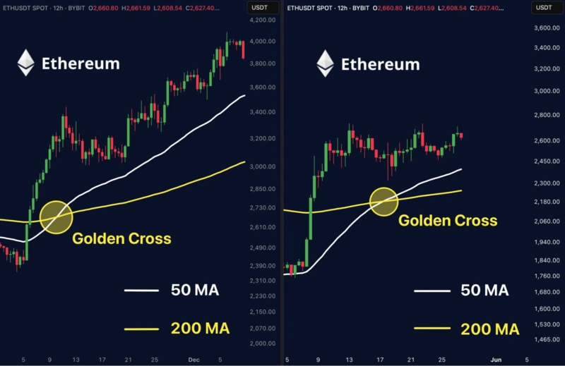 En kjent trader har identifisert en lovende konstellasjon for Ethereum med fremkomsten av et Golden Cross på 12-timersdiagrammet.