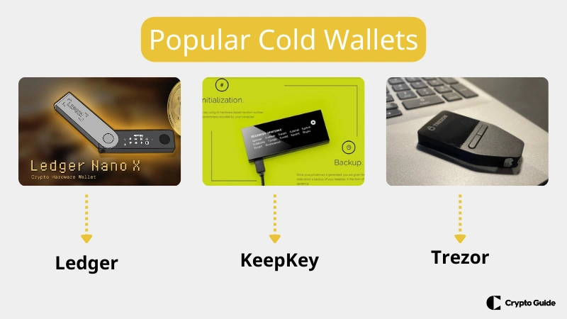 Populære kalde lommebøker inkluderer Ledger, Trezor og RockWallet, som er kjent for sine sterke sikkerhetsfunksjoner.