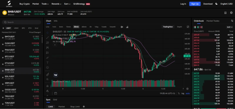 Plattformen er designet med både nybegynnere og avanserte tradere i tankene. Grensesnittet er rent, intuitivt og enkelt å navigere, noe som gjør det tilgjengelig for brukere som er nye innen kryptovaluta spot trading.